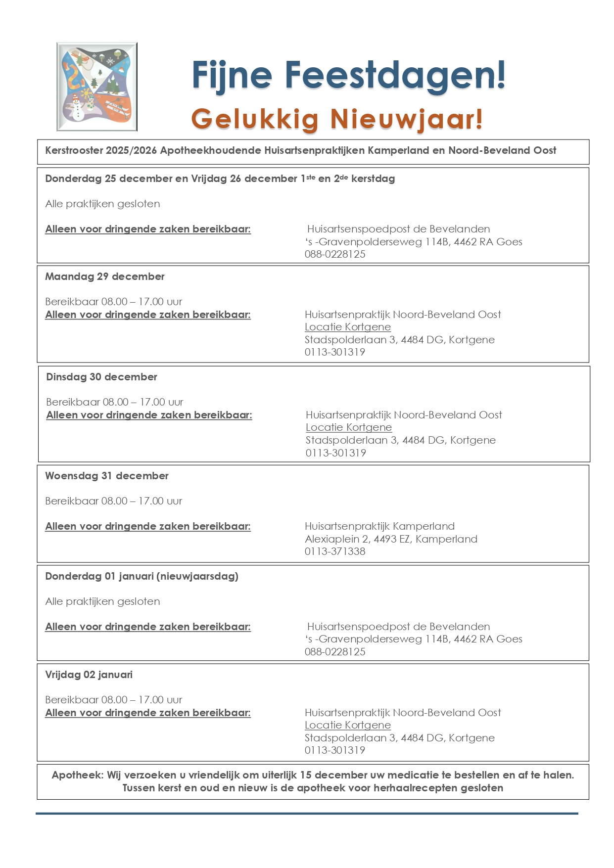 Dienstrooster tussen kerst en oud en nieuw 2025