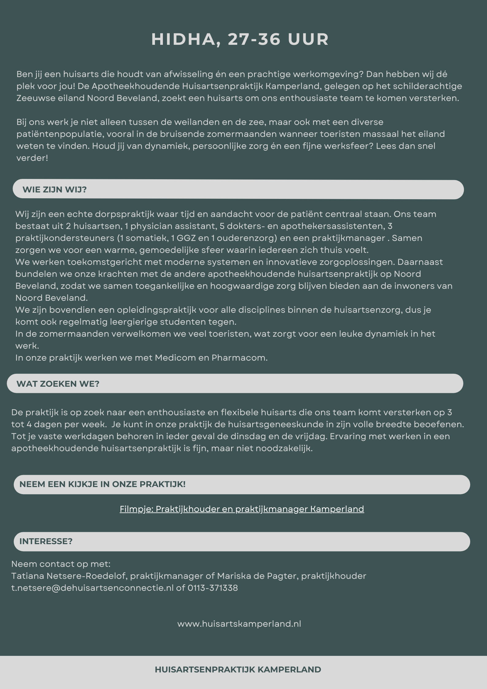Klik hier voor de volledige vacaturetekst voor huisarts waarnemer in vakantieperiodes.